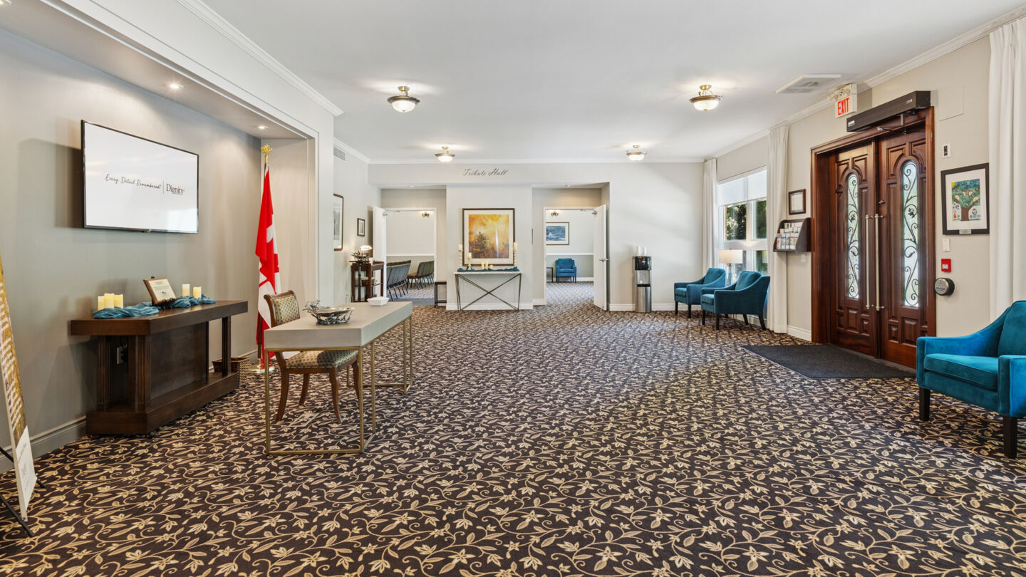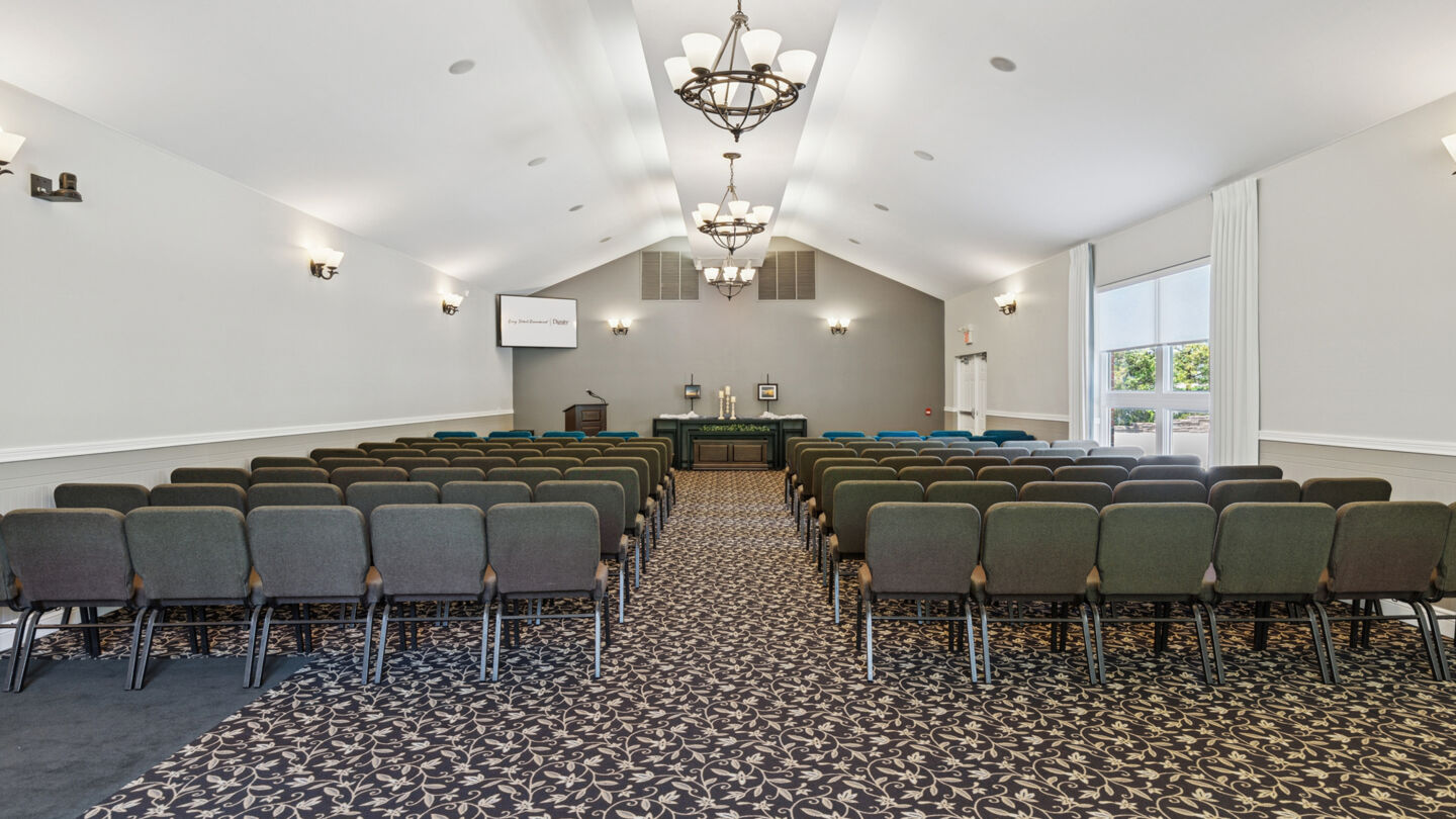 Celebration of life venue for services, gatherings and receptions at Thompson Funeral HomeOur Aurora funeral home is a bright, modern facility that works for both large groups and small gatherings. We have a lounge area and on-site catering, which takes some of the burden out of planning a funeral.