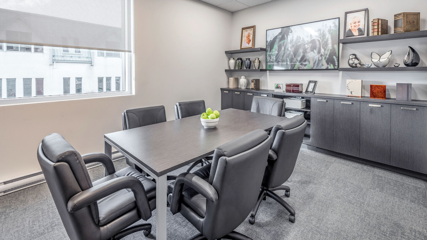 Arrangement room at Maison funéraire Racine, Robert & Gauthier Beauchamp Funeral HomeIn addition to assisting with an immediate need, Maison funéraire Racine, Robert & Gauthier Beauchamp Funeral Home specializes in working with families to make final arrangements in advance. When you plan ahead, you relieve your family from financial and emotional burdens while ensuring your wishes are fulfilled. We offer in-person and virtual consultations, as well as a free Personal Planning Guide.