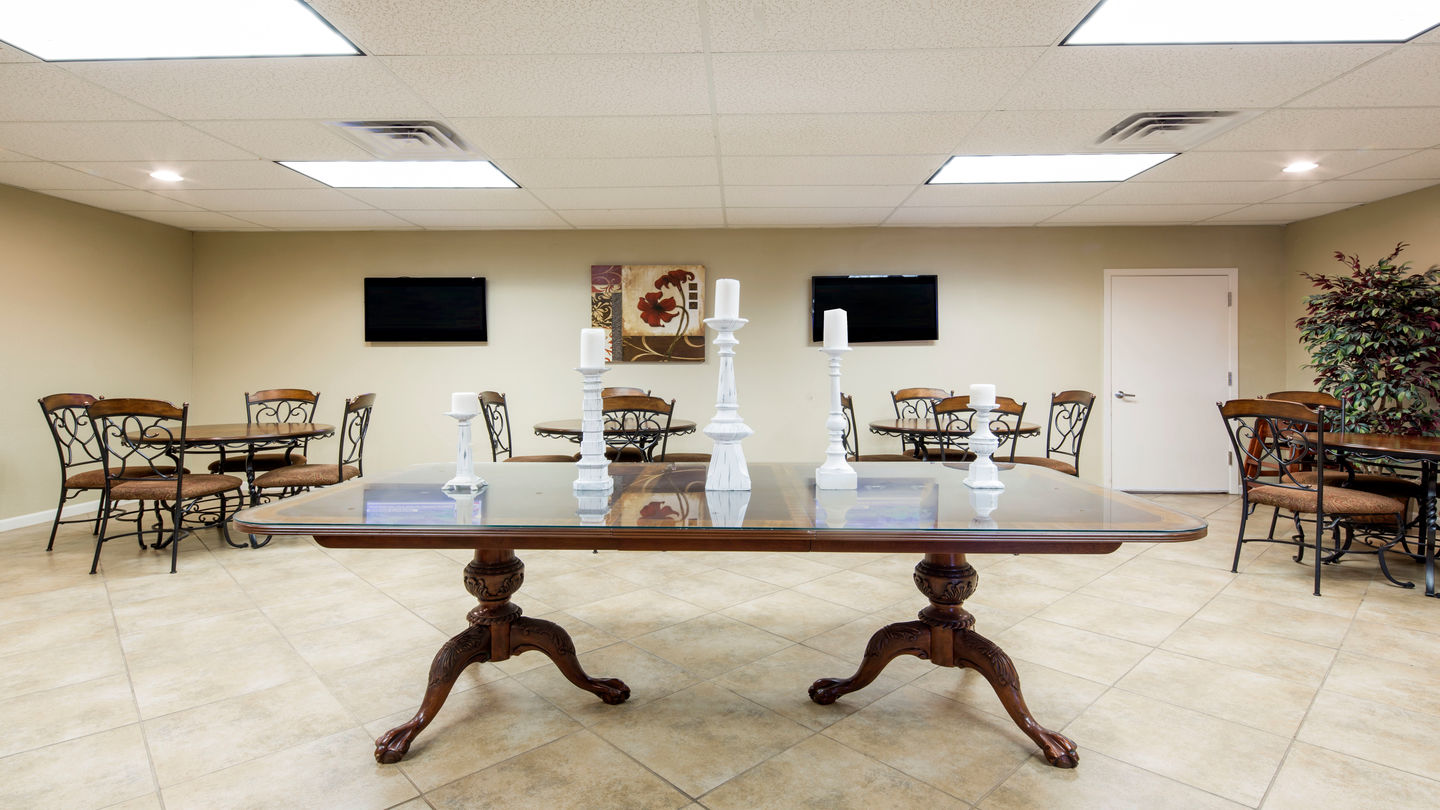 Our reception room is another flexible space for hosting family and friends. Want a catered reception after the funeral? From a breakfast taco buffet to cake-and-pie bar to a sit-down steak dinner, we can handle the catering—so you can spend more time with the people who matter to you.