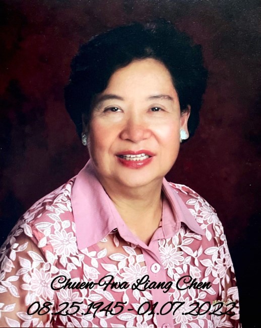 Chuen Fwa Liang Chen, age 76 passed away on Friday, January 7, 2022. Chuen Fwa was born August 25, 1945 in Zhejiang, China.