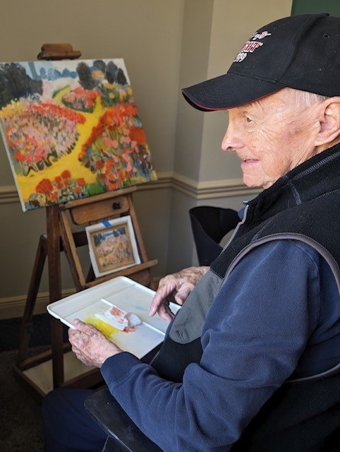 Howard was a devoted father, grandfather and great grandfather whose entrepreneurial spirit, determination and zest for knowledge seemed boundless. A private pilot beginning 1957 (the family had an airplane before they had a second car), he loved flying, as he graduated from a Stinson to a Navion to Beech Bonanzas to Cessna 310s and lastly to a Cessna 411. As a team, Howard and Peggy loved flying family and friends throughout North America as well as boating, having navigated the Gulf of Mexico and explored the inter-coastal waterway from Florida to North Carolina. When Elmer and Peggy were first married and they couldn’t afford to buy a home, he built one (with no prior building experience), and that home still stands today! He founded West Buick Cadillac in Bradford, PA and Kars n Deals franchise in Jamestown, NY. He sold waterfront real estate in the Carolinas, was a small business consultant who brokered multiple multi-million-dollar deals in Pennsylvania, then took up painting in retirement. His landscape, seascape, and animal paintings are lovingly displayed in the homes of family and friends. Perhaps the only goal E.H. did not achieve was living to 100, when he planned to renew his driver’s license. Luckily, for his family, fellow drivers and pedestrians, he gave up driving when he was 97.