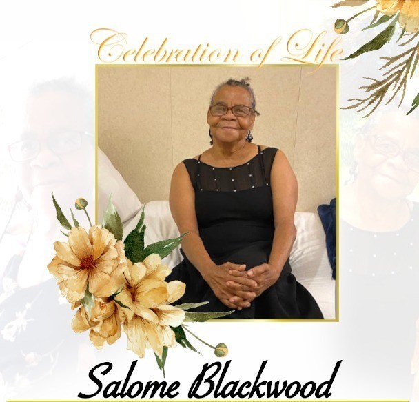 With great sadness, we announce the passing of Salome Blackwood on October 25,2023. Salome was our dearly loved mother, sister, grandmother, great grandmother, aunt, and, cousin and she will be greatly missed by her loving family and close friends.