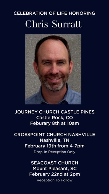 Celebration of life services for Chris will be held on the following dates: