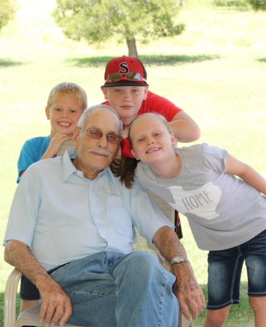 a daughter and a son; three grandchildren and seven great-grandchildren