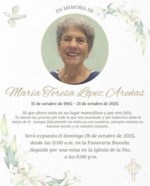 María Teresa López Areñas falleció el 21 de octubre de 2025 a la edad de 80 años. Nació el 15 de octubre de 1945 en Guantánamo, Cuba. Residente de Guaynabo, Puerto Rico. El Padre Orlando Tirado ofici...