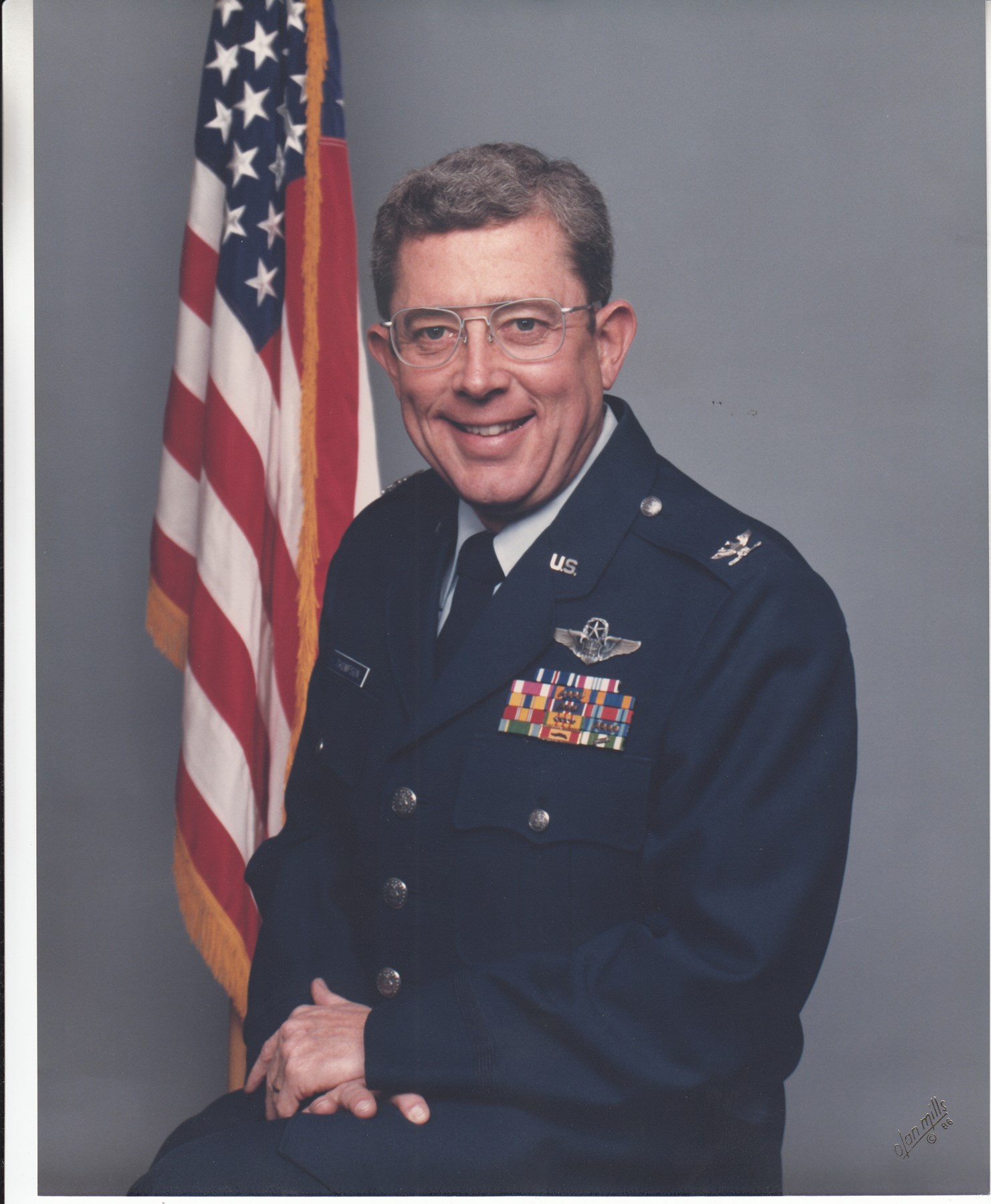 He is a master navigator with more than 5000 hours and 204 combat missions. His military awards and decorations include the distinguished Flying Cross, Defense Meritorious Service medal, meritorious Service Medal, Air Medal with nine oak leaf clusters, and Air Force Commendation Medal.