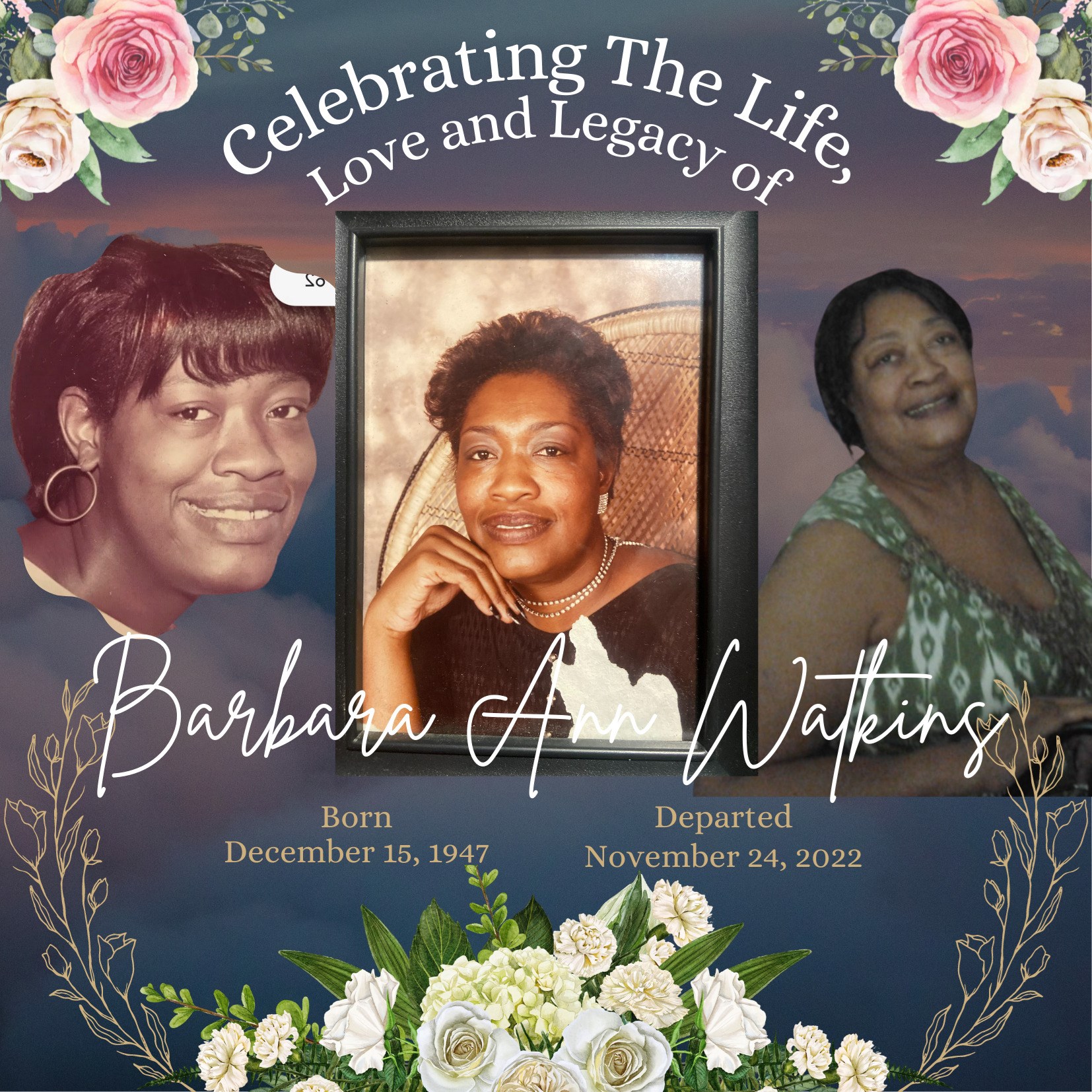 Barbara Ann Watkins was born in San Bernardino, California on December 15th, 1947 as a gift of love to mother Louise Frankie Watkins-Jackson and Raised by stepfather John Jackson who she loved dearly. She would go on to marry and widow Edward Van Thomas who would proceed her in death.