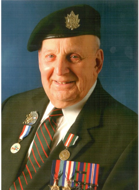 It is with great sadness that we announce the passing Rifleman William "Bill" Ross on Monday, August 29, 2016 at the Ste. Anne's Veterans Hospital at the young age of 91. Bill is survived by his beloved wife of 67 years Dorothy Hiscock, his son Mark (Sylvia), loving granddaughter Quincy, sister Janet, and his many nieces and nephews. Bill was born on February 15, 1925 in Montreal where he grew up. In February 1944, he joined the Queen's Own Rifles of Canada "Company C" and landed on Juno Beach on June 6 of the same year. He went on to liberate Belgium and the Netherlands in 1945. When he returned home in February 1946, he met his wife Dorothy and they married in November 1948. Bill and Dorothy spent many summers in Terrebonne and loved to travel all over, including Europe, Virginia Beach, PEI and St. Augustine, Florida where they spent many winters in their retirement. Bill was a member of the Masonic Lodge in Westmount, Ile Perrot Golf Club and Ste. Anne's Curling Club where he was President. He was a founding member of the Kirkland Hockey Association in 1970. The family would like to express our sincere thanks to the staff and volunteers of Ste. Anne's Veterans Hospital for the care Bill received these past six years. The family would also like to thank Claudette, Brian and Karen, Barbara and Ron, as well as all the many friends here, in France and in the Netherlands whom loved Bill so well. In lieu of flowers, donations can be made to: Royal Canadian Legion Branch 91 "Churchill", 28 Rue Ste. Anne, Ste. Anne de Bellevue, Quebec, H9X 1L3, or to the Ste. Anne's Veterans Hospital Foundation, 305 Boul. Des Anciens Combatants, Ste. Anne de Bellevue, Quebec, H9X 1Y9. Visitations will take place at Collins Clarke MacGillivray White Funeral Home located at 222 Autoroute 20, Pointe- Claire, Quebec on Thursday, September 1 from 7 p.m. to 9 p.m. and on Friday, September 2 from 10 a.m to 11 a.m. Service in the Chapel at 11 a.m.