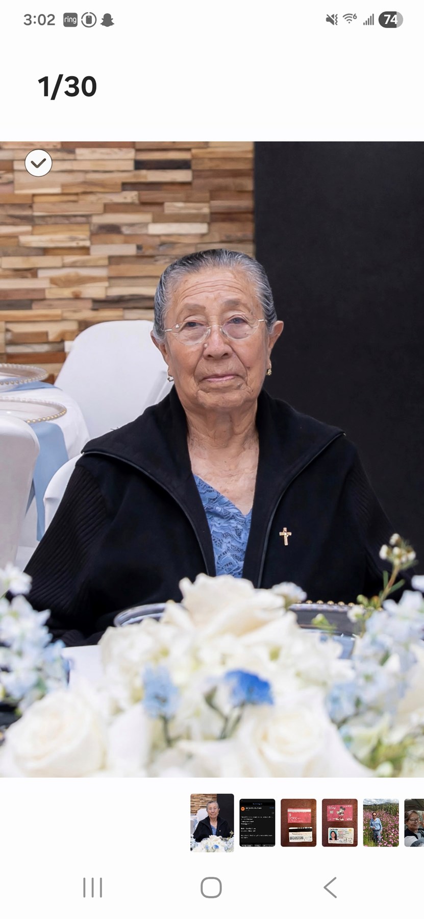 She is survived by her children, Carlos, Elena, Narciso, Margarita, Rosa, Rito, Ofelia, Sandra, and Victor, her sister Elvira, and her grandchildren.