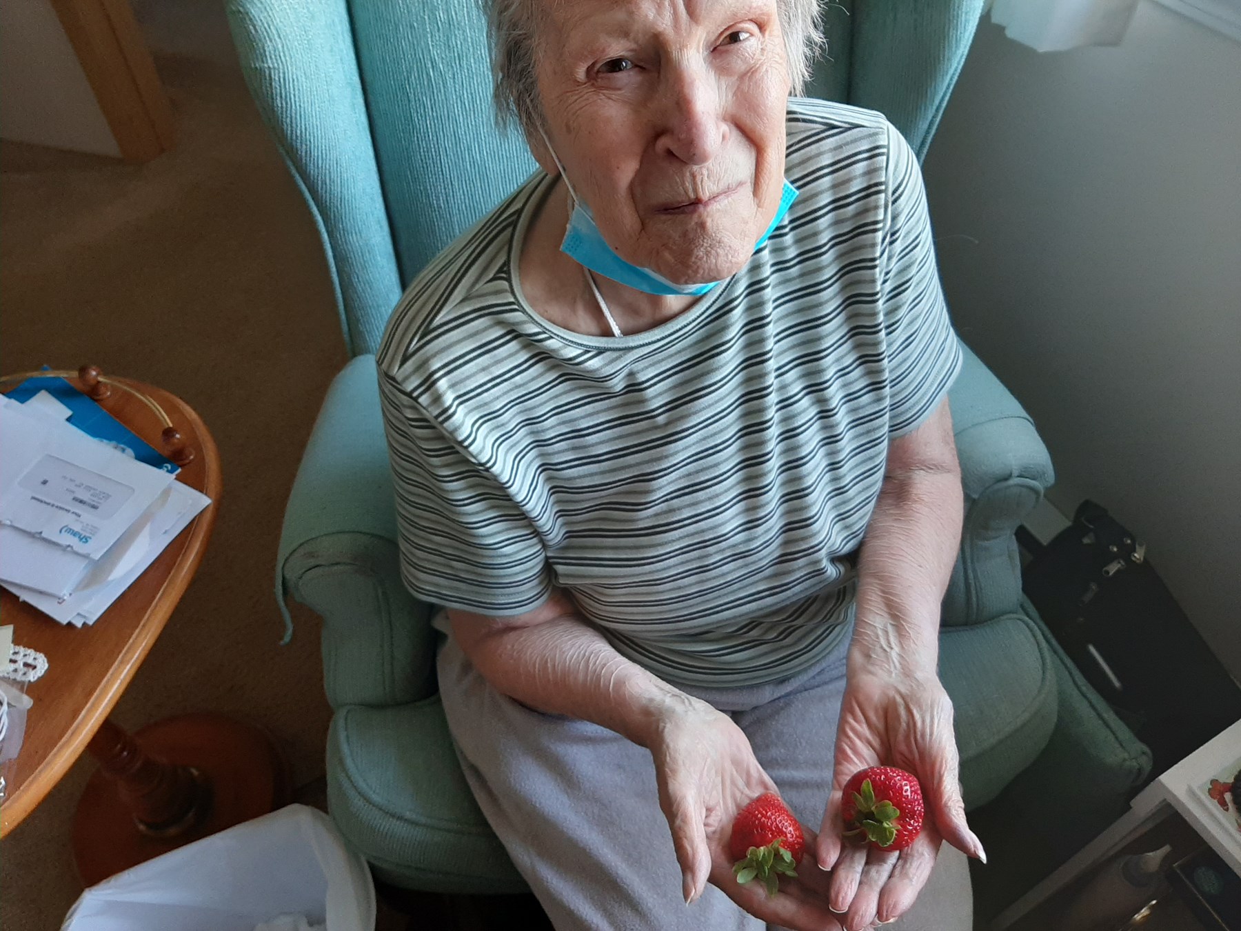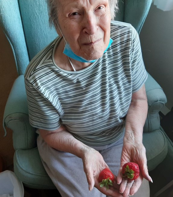 She moved to the Chateau in November 2019 because she was tired of dealing with the mowing, shoveling and wanted someone else to cook. She met some good friends there – Ethel, Fern, and Verna.
