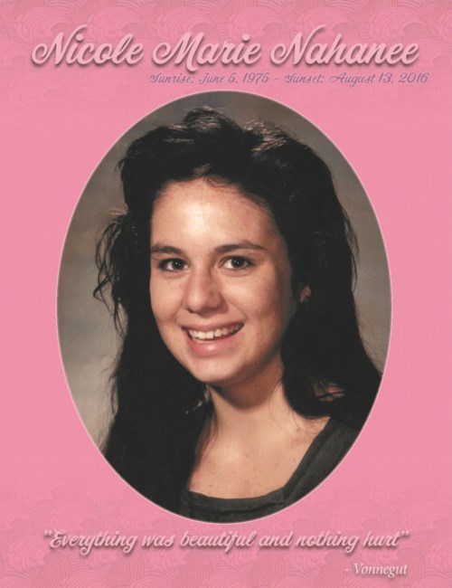 On behalf of Squamish Nation Chiefs and Council and Member Support Services it is with great sadness we announce the passing of Nicole Marie Nahanee. Nicole was born to her parents Irene Marie Anne (nee: Bruneau) and Lorne Whitten Nahanee Junior on June 5, 1975 in North Vancouver, BC and died unexpectedly on August 13, 2016 in Vancouver, BC. Nikki descends from the Casey / Bruneau and Williams /Nahanee families, she grew up on Eslha7an IR No. 1 and graduated from Centennial Secondary in Coquitlam, BC. Nikki can best be remembered for her love art and culture and she was a ballet dancing and photographer. Nikki spent time in Japan where she studied the culture and traditions of the Japanese and their way of life.