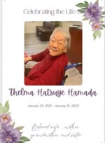 Thelma Hatsuye Hamada passed away on January 15, 2026, at the age of 100. She was born on January 23, 1925. She was a resident of Aiea, Hawaii. Private Services held.