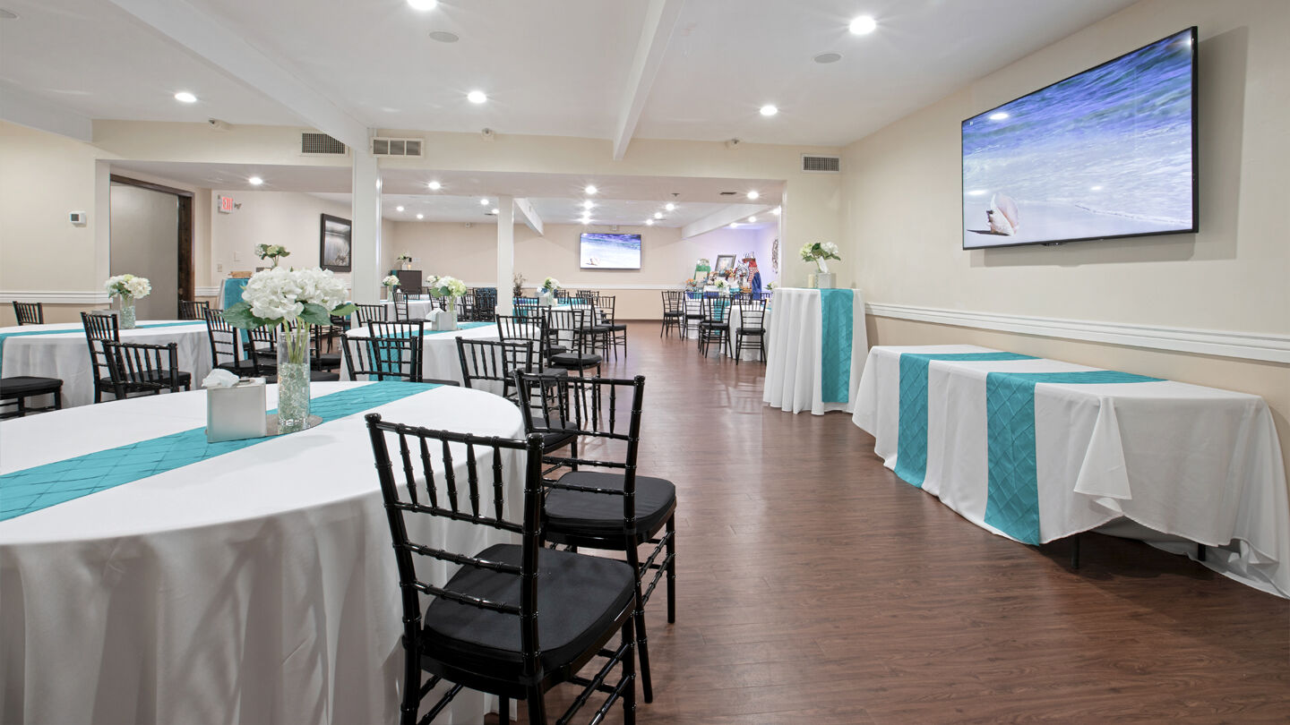 Outside venue at Green Acres Mortuary & CemeteryLight-filled, modern and spacious, our funeral home is ideal for everything from large events to intimate gatherings. The bright, airy chapel, aptly named Chapel of Light, comfortably seats more than 200 guests. It has two flat-screen TVs for sharing a video tribute—which we can create for you—and a premier sound system for a personalized playlist.