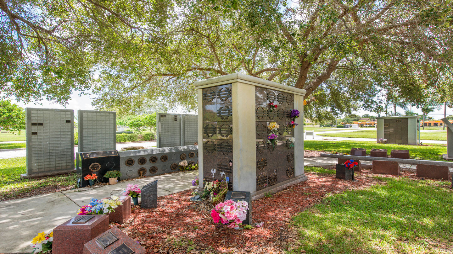 Mausoleum at Lake Worth Memory GardensLake Worth Memory Gardens, a cemetery located at 3041 Kirk Road, accommodates a range of burial needs. Families find well-maintained lawns, carefully landscaped gardens, mature trees, and in-ground and above-ground burial options. Those who prefer cremation may select from mausoleum niches, including glass-front niches that are a welcoming place for loved ones to be remembered with photos, flowers and personal treasures; or new cremation gardens for burial or scattering.