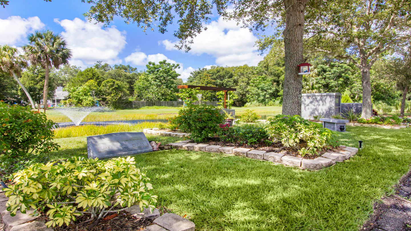 Cremation garden at Robert Toale and Sons Funeral Home at Palms Memorial ParkPalms Memorial Park is among the larger cemeteries in the Sarasota area and is mostly restricted to flush markers. Our signature garden, Garden of Reflections, includes a spectacular waterscape designed with rocks and boulders from around the country. The sound of flowing water can be heard throughout the garden, which offers cremation benches and private family estates.