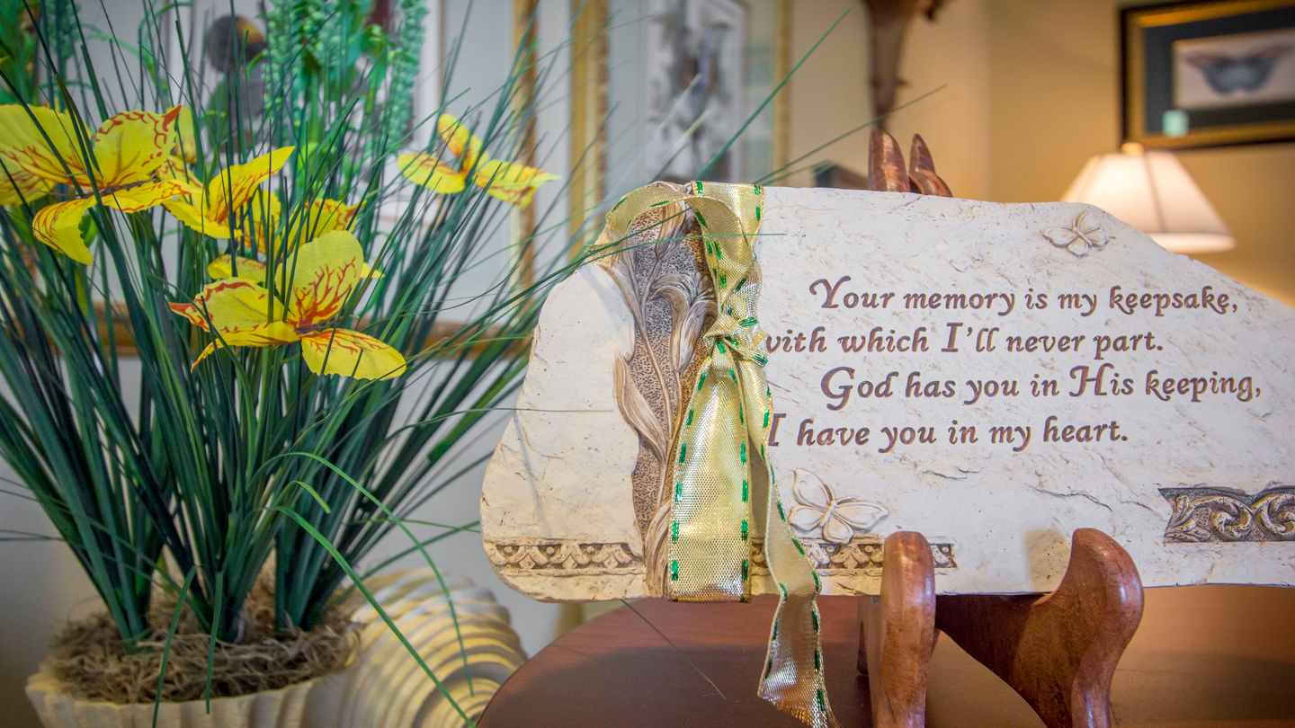 Reception area at Blount and Curry Funeral Home Oldsmar West Hillsborough ChapelOur attentive funeral directors begin by listening to you. Inspire us with a treasured quote, trademark style or lifelong hobby, and we will work to incorporate it into a ceremony to be remembered by all who attend. Music selections range from timeless classical pieces to joyful contemporary tracks. Choose to receive a small gathering of family after the service, or entertain a large crowd in our flexible reception area beforehand. Select from a variety of catered fare, or share your family’s secret recipe for a personalized touch. Your imagination is our inspiration, and we will always do our best to accommodate each wish.