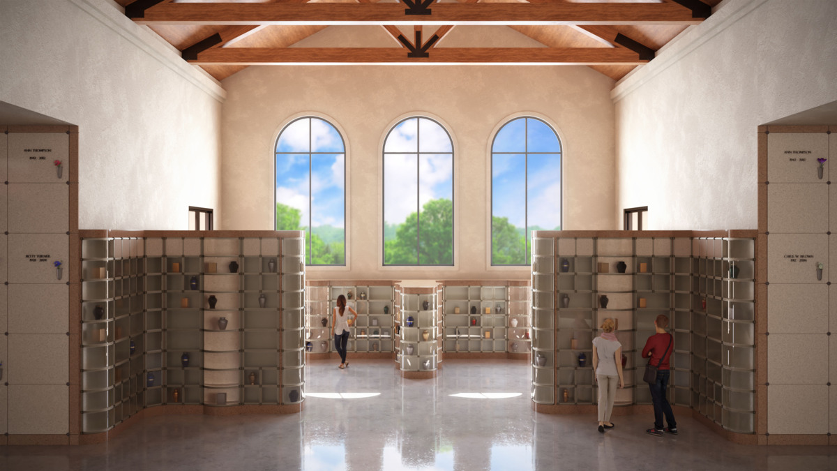With climate-controlled indoor areas and peaceful outdoor surroundings, the mausoleum provides a welcoming, comfortable place for friends and family to visit, no matter the season or weather.