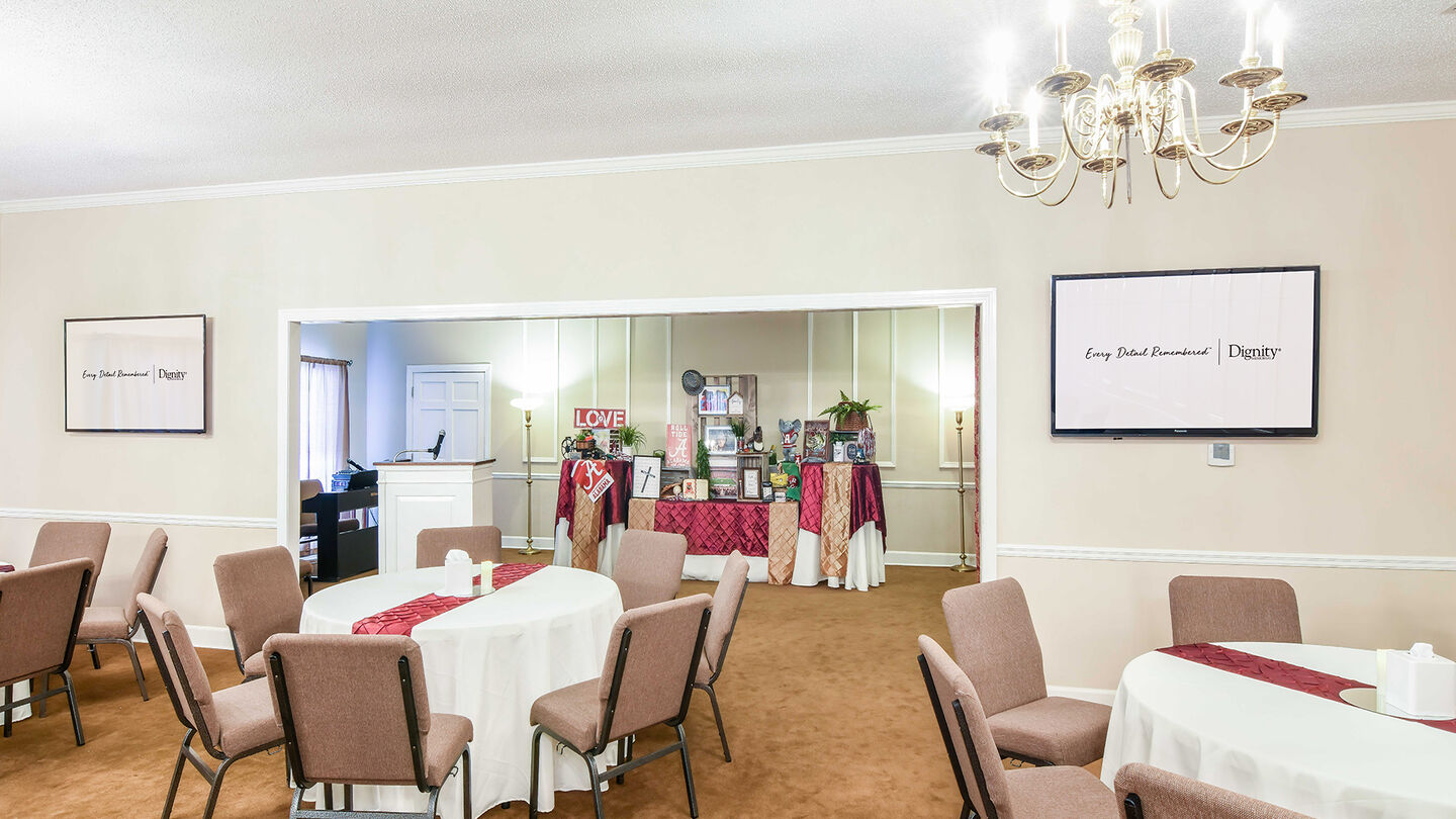 Lugar de recepción Premium en Kilgroe Funeral HomeWe understand the importance of having friends and family nearby during this difficult time. Our funeral home in Leeds has large and small family rooms as well as a warm, inviting chapel for gathering with loved ones. Regardless of what type of service you choose, we'll provide space to host a tribute that celebrates life. Our team also creates keepsakes for guests, writes obituaries and handles other small details so you can focus on healing.