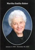 Martha Emilia Baker January 3,1930 — November 30, 2025 Martha Baker passed into the care of her Lord on November 30, 2025, one month shy of her 96th birthday. Preceding her in death was her beloved ...