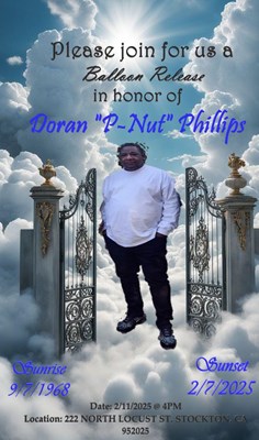 Doran Lance Phillips, age 56, of Stockton, California passed away on Friday, February 7, 2025. A viewing for Doran will be held Thursday, February 27, 2025 from 4:00 PM to 7:00 PM at Frisbie-Warren ...
