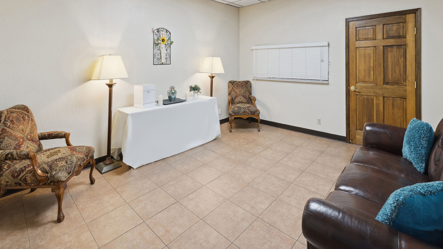 Arrangement room at Funeraria del Angel South Lawn & South Lawn CemeteryIn addition to assisting with an immediate need, Funeraria del Angel South Lawn specializes in working with families to make final arrangements in advance. When you plan ahead, you relieve your family from financial and emotional burdens while ensuring your wishes are met. We offer in-person and virtual consultations, as well as a free Personal Planning Guide.