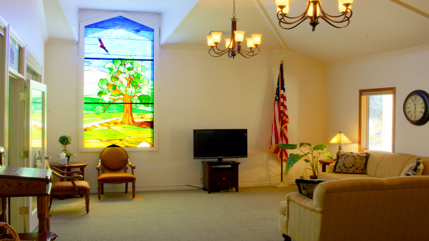 Our beautiful chapel at Hoyt-Cole Chapel of the Flowers is conveniently located on the corner of Jackson and Walnut streets in Red Bluff. Our renovated chapel features stained-glass windows designed by local Red Bluff artist Jack Graham, which depict local country scenes from Red Bank Road. Our lovely courtyard, well-kept with attractive trees and seasonal flowers, provides a calming place to sit and reflect in honor of the memory of a loved one.