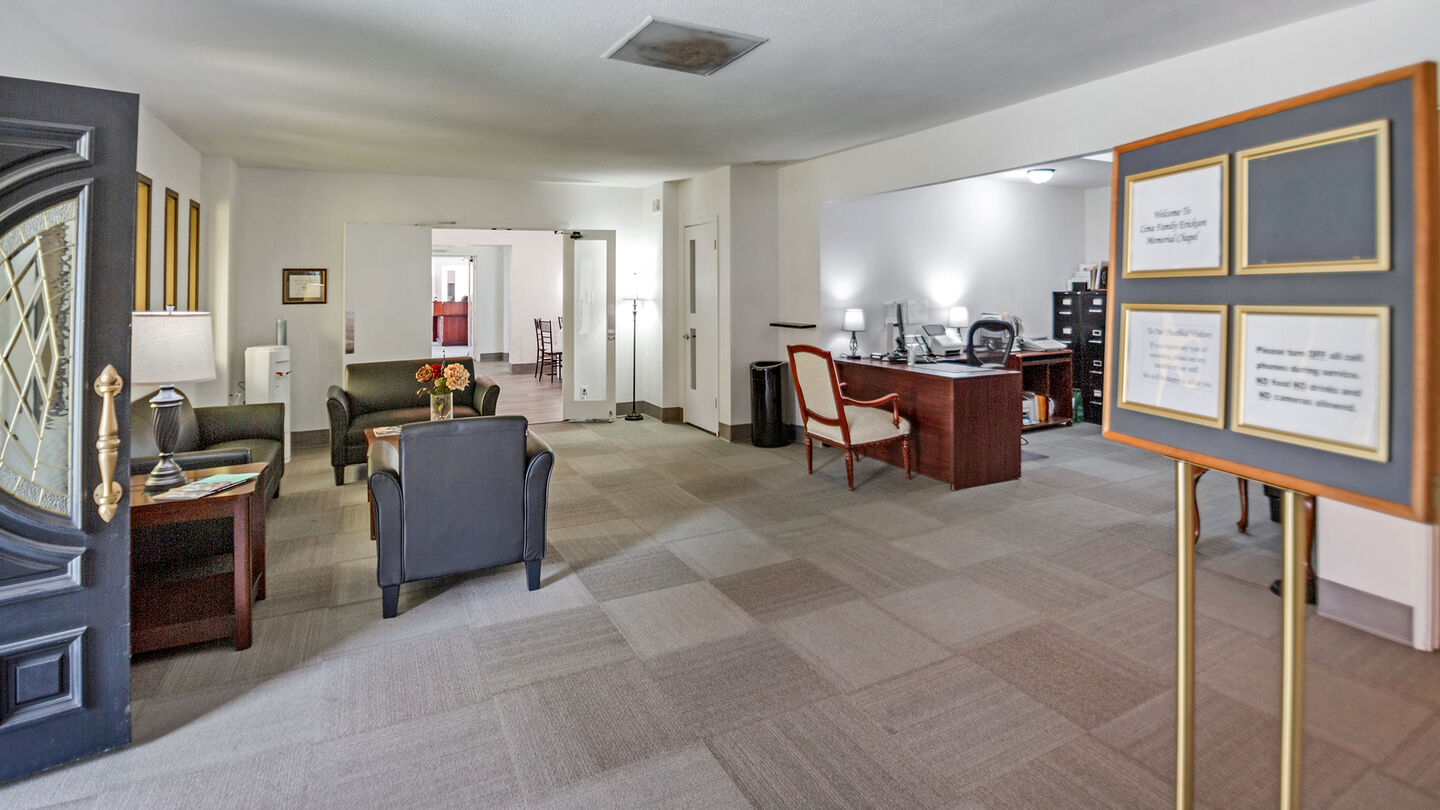 Standard reception venue at Lima Family Erickson Memorial ChapelIn 1945 in San Jose, Donald J. Lima Sr. established Lima Salmon Erickson Memorial Chapel by bringing on two partners, Ralph Salmon Sr. and Gilmore Erickson. As years progressed, Mr. Lima became the sole owner of the establishment, and when his children graduated from San Francisco College of Mortuary Science together in 1971, the name was changed to Lima Family Erickson Memorial Chapel. In addition, Mr. Lima purchased Harmon A. Smith Funeral Home in 1974 and changed its name to Lima Family Santa Clara Mortuary.
