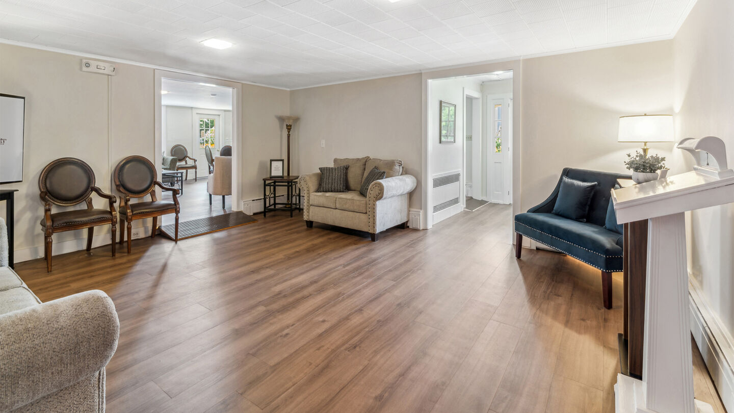 Lobby at Fulton-Theroux Funeral ServiceOur funeral home is welcoming and warm, combining antique furniture with modern amenities to provide home-like comfort. We understand that losing a loved one is an emotional and difficult experience and are committed to providing compassionate, professional and personal service. At Fulton-Theroux Funeral Service, we are here to lessen the burden during your time of grief with personalized support and guidance to help you create a memorialization of your choosing.