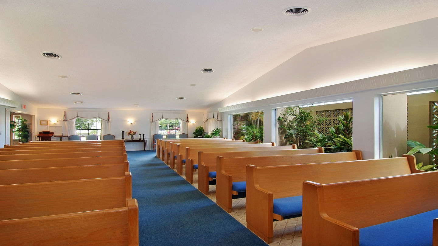 Lobby at Aycock Funeral HomeWe are centrally located on Northeast Jensen Beach Boulevard, close to many churches, the community center, downtown, Hutchinson Island and All Saints Cemetery. Our facility has a contemporary, home-like setting with well-appointed and comfortable rooms for visitations and receptions, as well as a spacious chapel for on-site services.