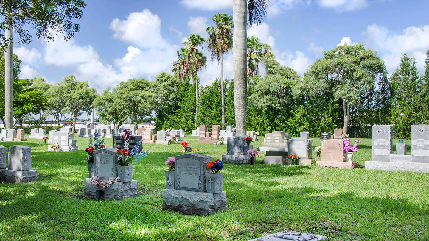 Our Miami cemetery is located on Southwest 117th Avenue, off the Florida Turnpike. We are easily accessed via the Ronald Reagan Turnpike, Don Shula Expressway and Southwest 152nd Street. We are a short drive from Palmetto Bay, Miami Beach and the Florida Keys. For those traveling by air, the cemetery is close to the Miami International Airport.