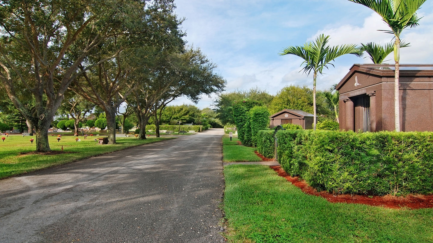 Cemetery grounds at Riverside Memorial ParkNestled in a quiet residential neighborhood next to a state park, our picturesque cemetery is a quiet oasis amid the energy and vibrancy of the modern communities around it. Tequesta and Jupiter residents enjoy the beauty of the park and can often be found walking and bicycling through its paths.