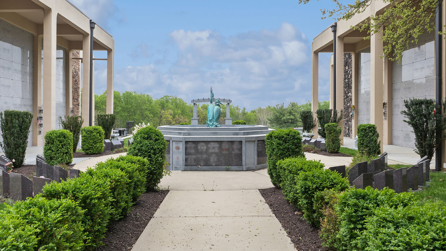 Three mausoleum buildings contain approximately 700 crypts with marble fronts imported from Italy and Portugal. Our Heron Fountain is located in the courtyard between the buildings, providing a serene spot for personal reflection. In addition, we offer a non-denominational chapel for committal services. The chapel, located on the lower floor, contains a 1920s Art Nouveau stained-glass window at the altar that was originally located in a French chateau.