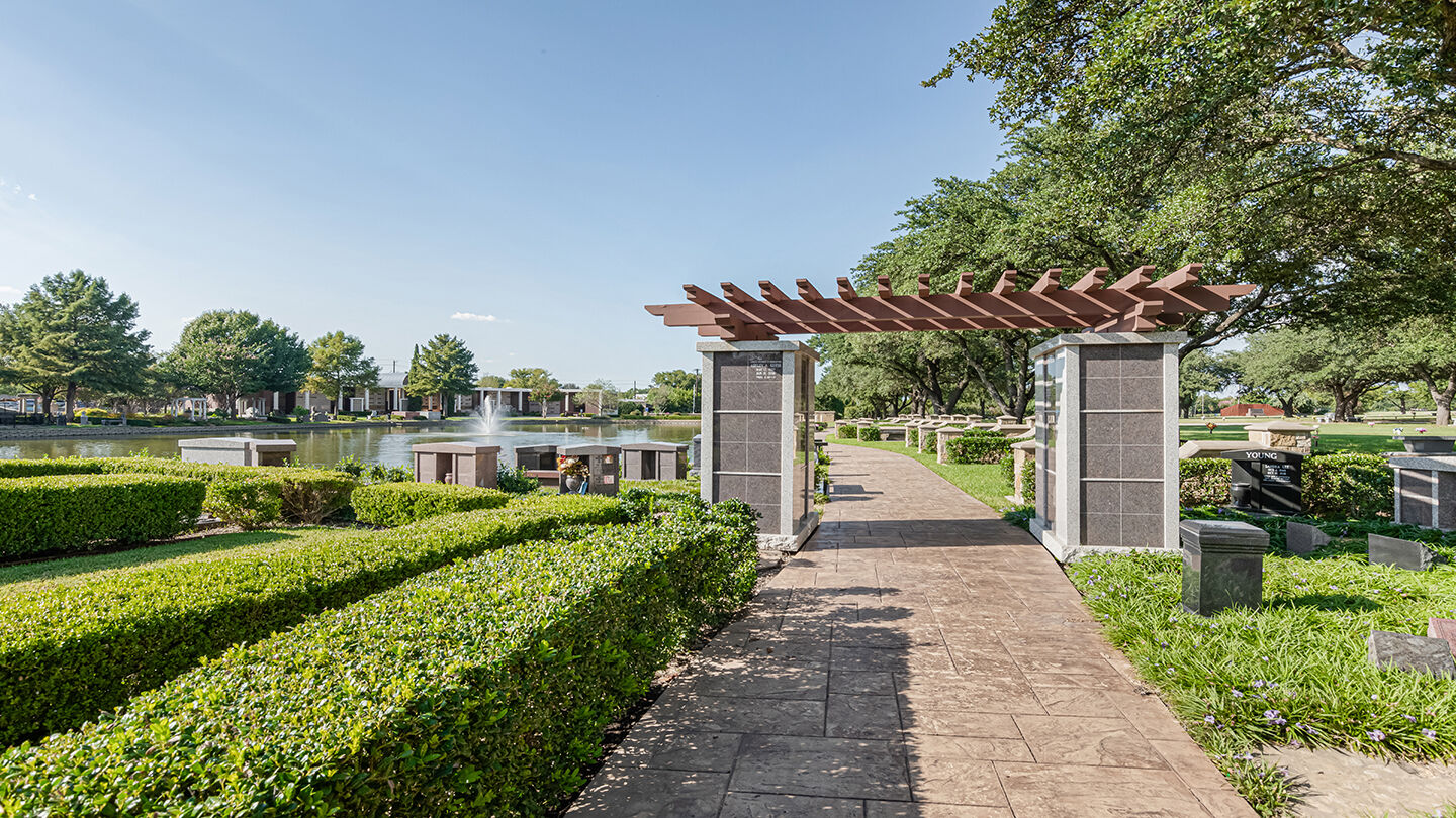 Whatever your burial preference or religious requirement, Bluebonnet Hills Memorial Park does its best to accommodate. The cemetery offers a variety of burial choices: traditional ground burial, garden estates, private family mausoleums, a lakeside community mausoleum and a range of columbaria for inurnment of cremated remains.