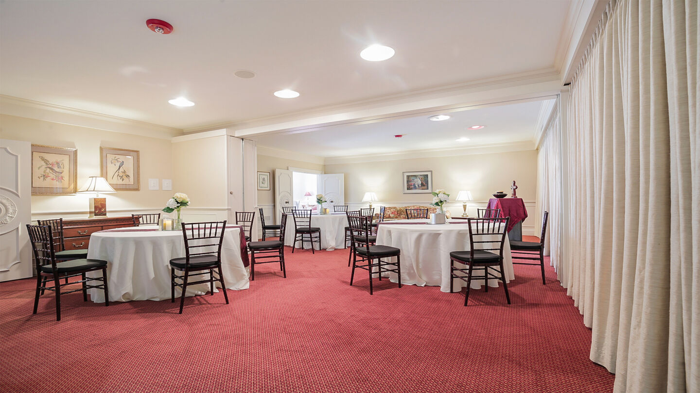 Reception room at Waltrip Funeral DirectorsOur staff focuses on creating a comfortable environment for family and friends to gather and support one another, and for most people food is comfort. You can work directly with our caterer in selecting from various choices of cuisine. Though we do have set menus to choose from, you are not limited to those menus. Whatever you'd like, from French pastries and coffee to Italian pasta and wine, we'll do our best to make sure you enjoy it. And we always pay attention to the details—right down to the forks and plates.