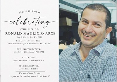 Mr. Ronald Mauricio Arce passed on March 23, 2026, at the age of 62. He was born October 8, 1963, in El Salvador, and was a resident of Washington, District of Columbia. An Evening Visitation will ...