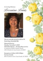 In Loving Memory of Lorraine M. Lewis August 13, 1950 – October 22, 2025 Lorraine M. Lewis: beloved mother, grandmother, great-grandmother, sister, friend, and pillar of the Casa Grande community; pas...