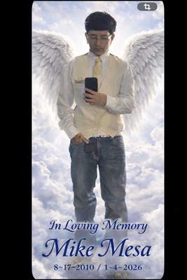 With heavy hearts and unwavering love, we remember Mike Michael Mesa Jr., age 15, who was born on August 17, 2010 in Corpus Christi, Texas, and entered Heaven’s gates on January 4, 2026. A sophomore ...