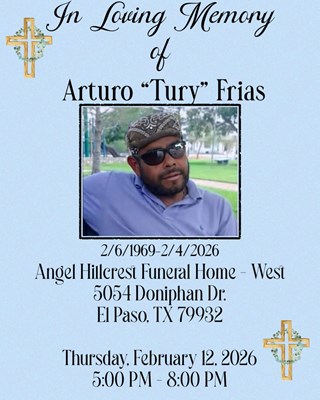 T-Bone "Tury" Frias, born on February 6, 1969, passed away on February 4, 2026, at the age of 56. Tury was a resident of El Paso, Texas. A visitation will be held at Funeraria Del Angel Hillcrest Wes...