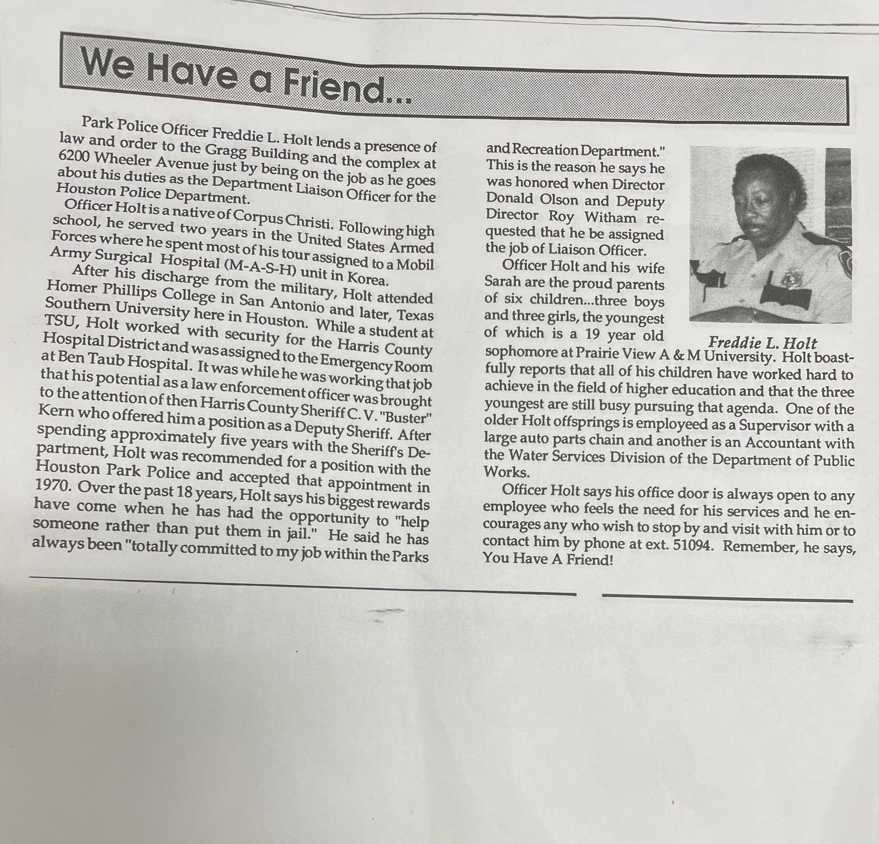 Freddie Lee Holt, age 93, of Houston, Texas passed away on Saturday, December 23, 2023.