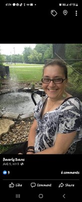 Beverly F. (Shrode) Evans, 58, of Evansville passed away Thursday June 22, 2023. She was born September 28, 1964 in Evansville to the late Harold and Jean (Shehorn) Shrodes. She loved arts and crafts...