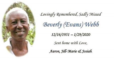 Beverly Cecile Evans Webb, age 68, passed away on Wednesday, January 29, 2020. She was born on December 16, 1951 in Harlem, NY to the late Amon Evans and Esther Maria Guiler Evans. She is survived by...