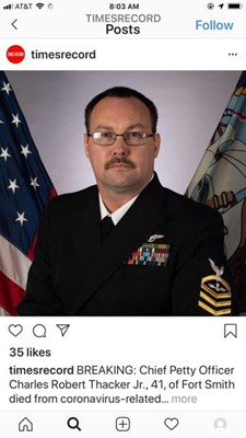 Aviation Ordnanceman Chief Petty Officer Charles Robert Thacker, Jr., 41, assigned to the USS Theodore Roosevelt, died April 13, 2020 at U. S. Naval Hospital Guam. He was a graduate of Southside High ...