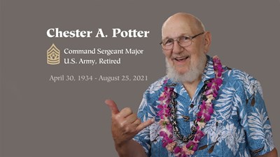 Command Sergeant Major (U.S. Army, retired) Chester "Sam" Alfred Potter, age 87, of Kaneohe, Hawaii passed away on Wednesday, August 25, 2021. He was born April 30, 1934 in Waltham, Massachusetts to ...