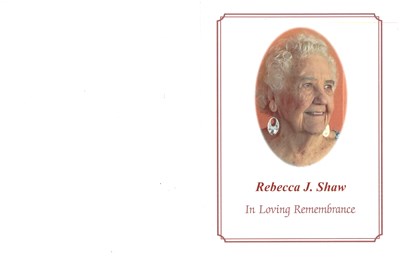 Rebecca Jane Shaw, age 94, of Huntsville, Alabama passed away on Wednesday, September 13, 2023. Fond memories and expressions of sympathy may be shared at www.westminstermemorial.net for the Shaw fa...