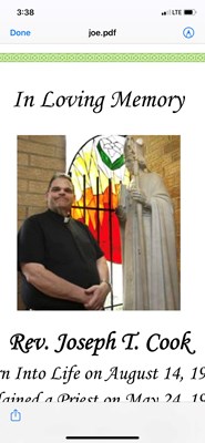 Rev. Joseph T. Cook born August 14, 1959, ordained May 24, 1986, at rest on August 17, 2020. Faithful priest in the Archdiocese of Chicago for 34 years recently associate pastor of St. Linus Parish, O...