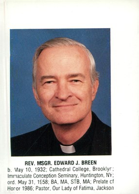 Rev. Msgr. Edward J. Breen entered into eternal life on September 8, 2014 at Immaculate Conception Center, Douglaston, NY. Pastor Emeritus of Our Lady of Fatima RC Church, East Elmhurst, NY. Beloved ...