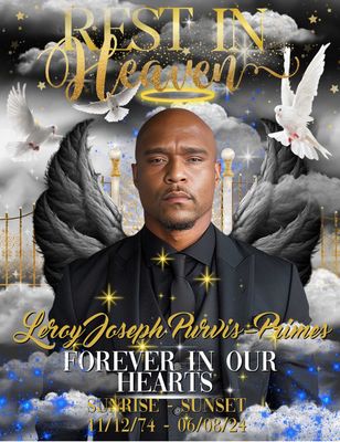 Leroy Joseph Purvis, age 49 passed away on Saturday, June 8, 2024. ON NOVEMBER 12, 1974 A PRECIOUS BABY BOY WAS BORN TO THE PROUD PARENTS OF ROBERT LEE PRIMES AND GLORIA JEAN PURVIS-PRIMES. HE ACCE...