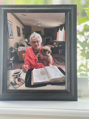 Survived by her beloved husband, Frederick "Fred" Smith; daughter, Cynthia Urquhart; step-sons, Craig & Curt Smith; 1 grandson and sister, Virjean Lee. Celebration of Life pending