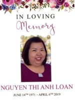 Our family is sad to announce the passing of our Wife, Mother, Grandmother Loan Nguyen. She passed away surrounded by her loved ones after a long battle with her kidney disease. The funeral will be a ...