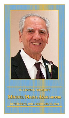Miguel Maria Azar, age 87 passed away on Sunday, February 25, 2024. Miguel was born in Argentina. A funeral mass for Miguel will be held Monday, March 11, 2024 at 11:00 AM at St Martha's Catholic Ch...